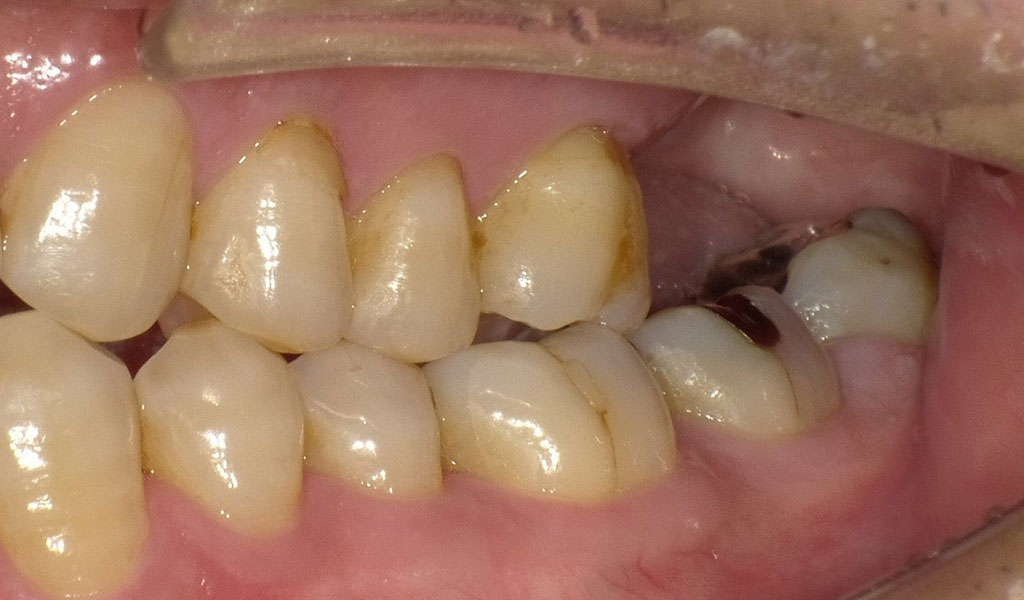 60代男性。横浜市以外から通院。左上7番を他院にて抜歯後、部分入れ歯ができないことから、当院にてインプラント治療を希望されてご来院されました。