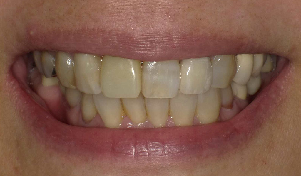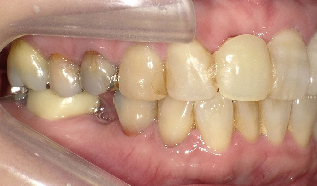 30代女性・横浜市在住。左上4番の詰め物の奥に虫歯ができてしまい、脱離。他院にて相談したがインプラント治療を提案されたため、当院でのセカンドオピニオンを受けるためにご来院されました。