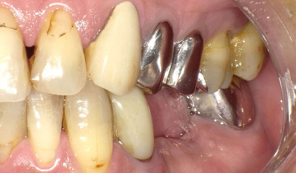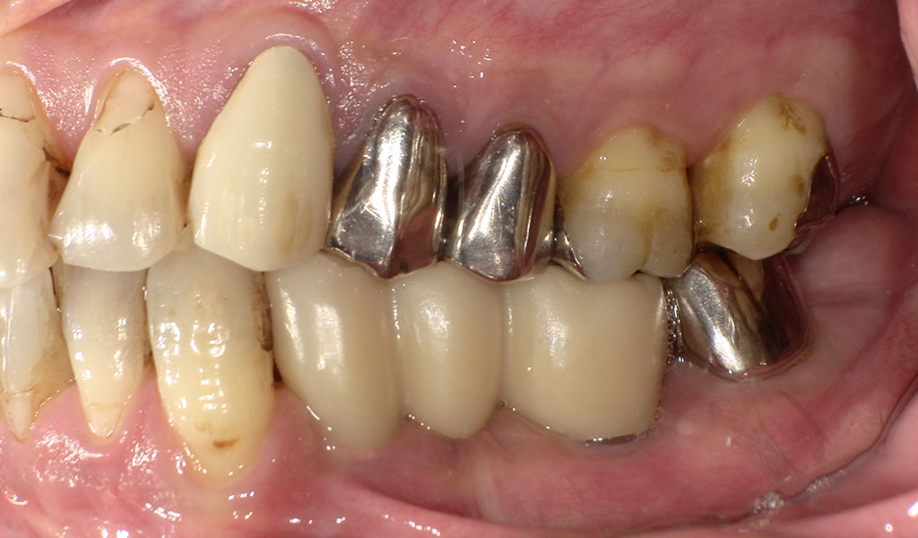 50代男性・藤沢市在住。右下奥歯のブリッジが割れていて、他院にて4本ブリッジをすすめられたがインプラントが長持ちするならということで当院を受診。