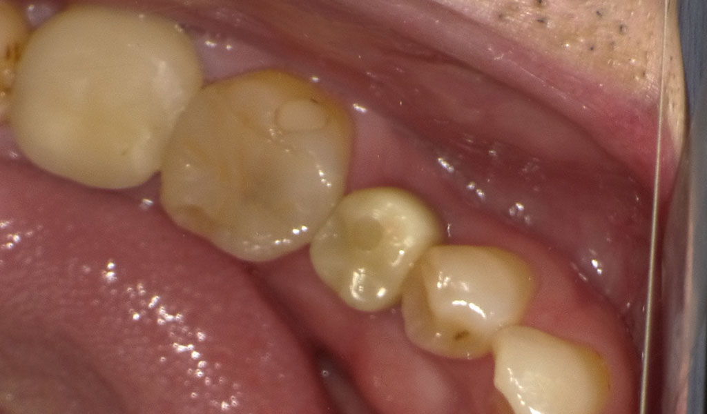 50代男性・さいたま市在住。20年前に左下5番を他院にて抜歯後、当院にてインプラント治療。人工歯はジルコニア人工歯。スクリューリテインにて固定しました。歯周病菌の数が多いため、歯周内科治療も実施しました。