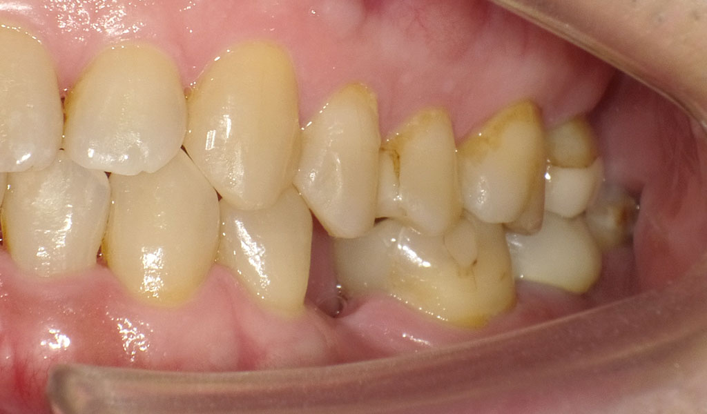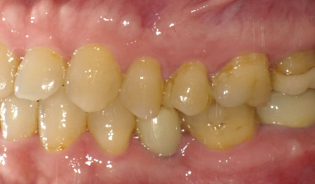 インプラントと骨がしっかり結合するまで3ヶ月待ち、また、歯周内科による治療が終わった上で、インプラントの上に人工の歯を被せる治療を行いました。