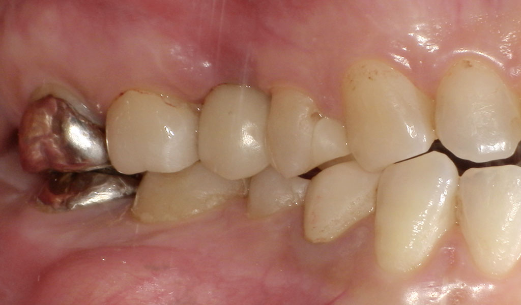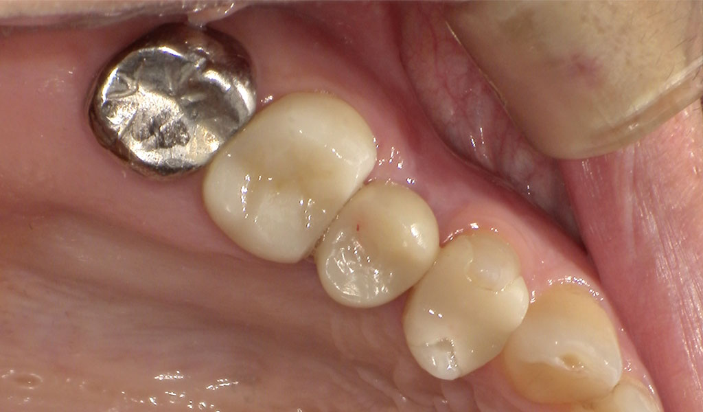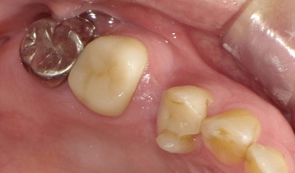 40代女性・横浜市在住。右上5番のクラウンが取れ、歯根破折を起こしていたため、当院にて抜歯、インプラント治療。人工歯はジルコニア人工歯。スクリューリテインにて固定しました。