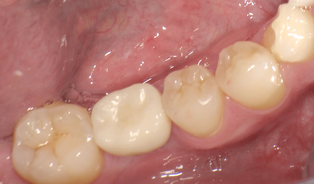 20代男性・横浜市在住。10ヶ月前に右下6番を他院にて抜歯、当院にてインプラント治療。人工歯はジルコニア人工歯。スクリューリテインにて固定しました。歯周病菌の数が多いため、歯周内科治療も実施しました。