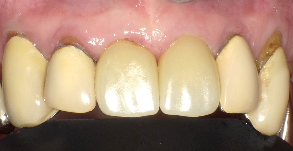 70代男性。横浜市在住。上前歯2本の対し2本のジルコニアクラウン(2本症例)による審美治療。