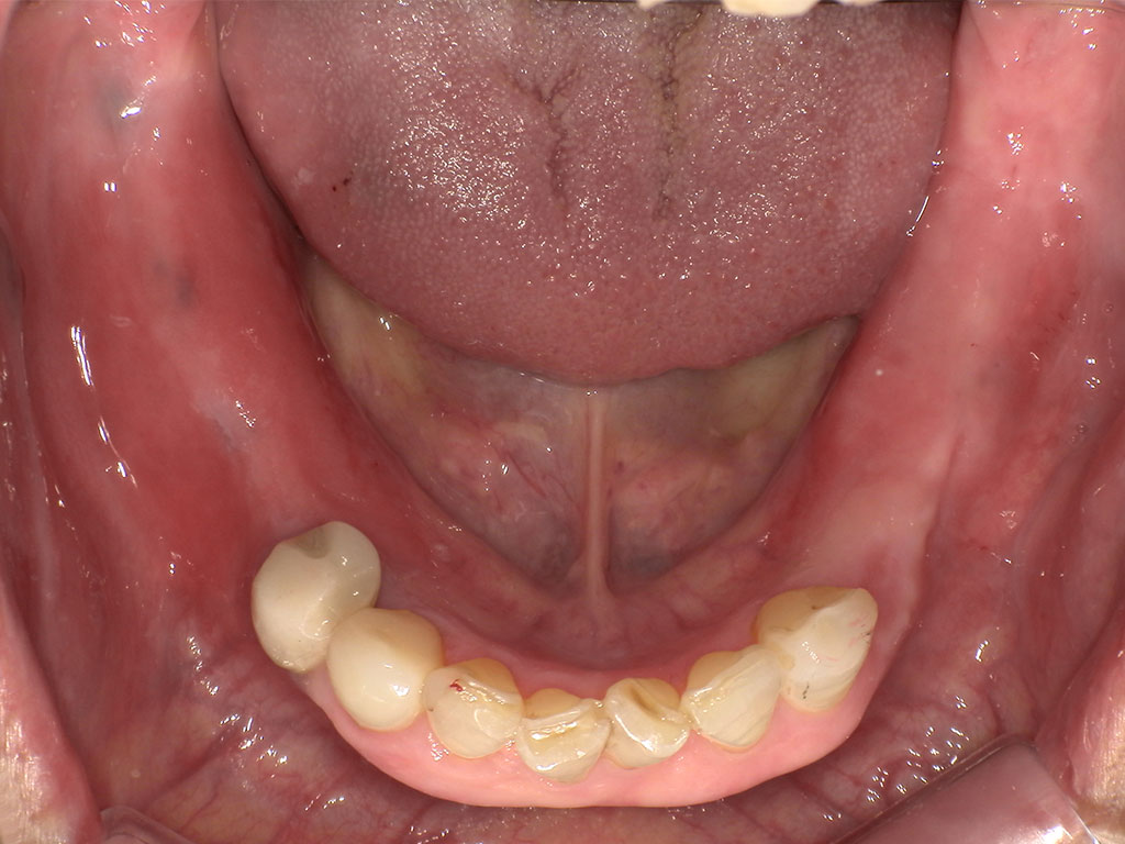 70代女性・大和市在住。下顎の義歯を他院にて保険で作成したが合わないため、自費の入れ歯の作成を希望。また、下顎に合わせて上顎も義歯を作り直したいとのことで来院。