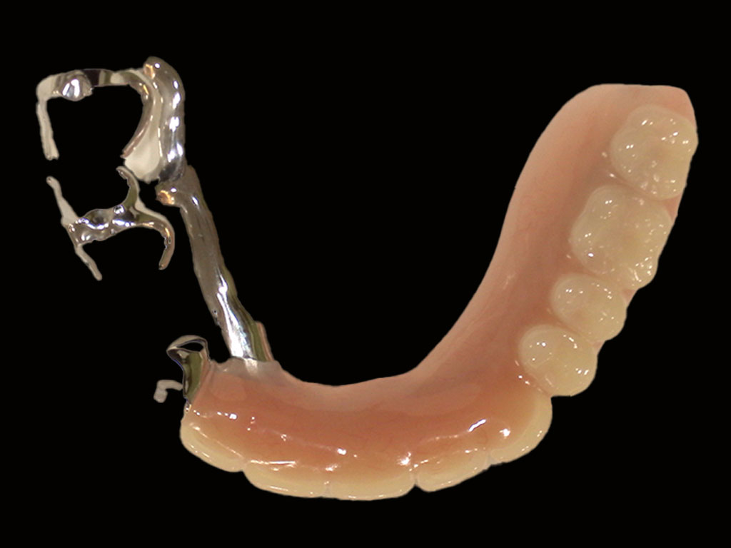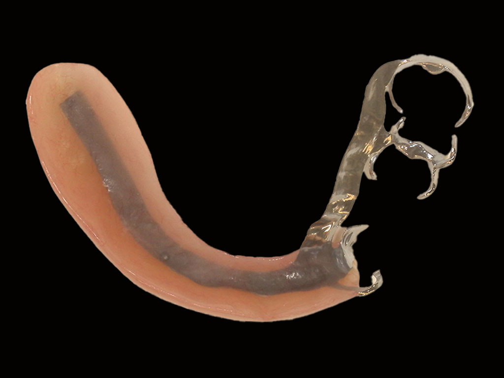 金属部分が目立たない、フィット感がある、入れ歯を支える歯への負担を軽減させるため、上顎左2番1番および右1234567番が欠損を補う自費の入れ歯を作成。異物感をできるだけ少なくするために、オールプラスチックのスマイルデンチャーは選択せず、舌で触れる部分はメタルで薄く加工することにした。またクラスプも金属のため、緩くなったら締めなおせるというメリットもある。デジタルスキャナーで型取りをして、3Dプリンターで模型を作成し、その精密な顎模型を製作。そして当院専属の入れ歯技工士早澤が入れ歯を精魂込めて製作いたしました。