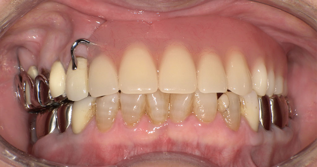 上顎左2番1番および右1234567番が欠損を補う自費の入れ歯