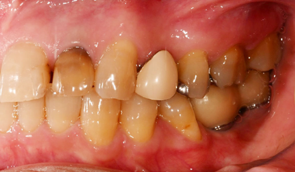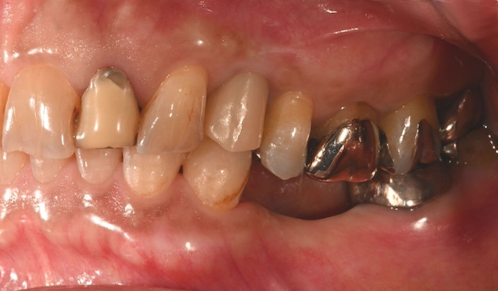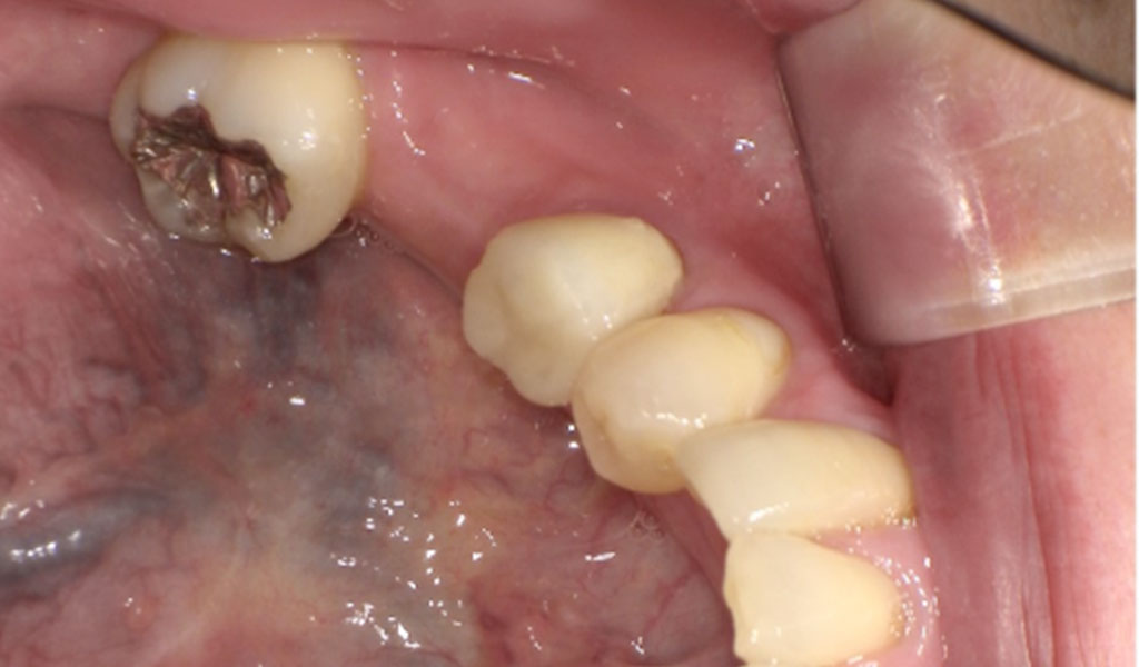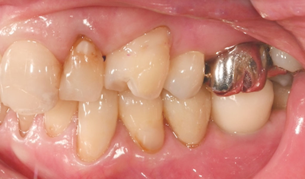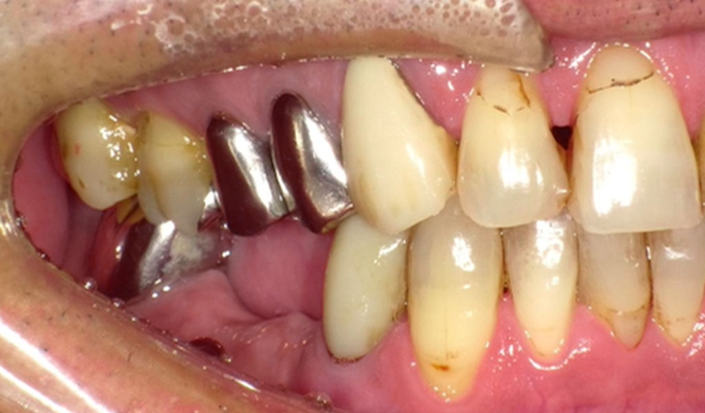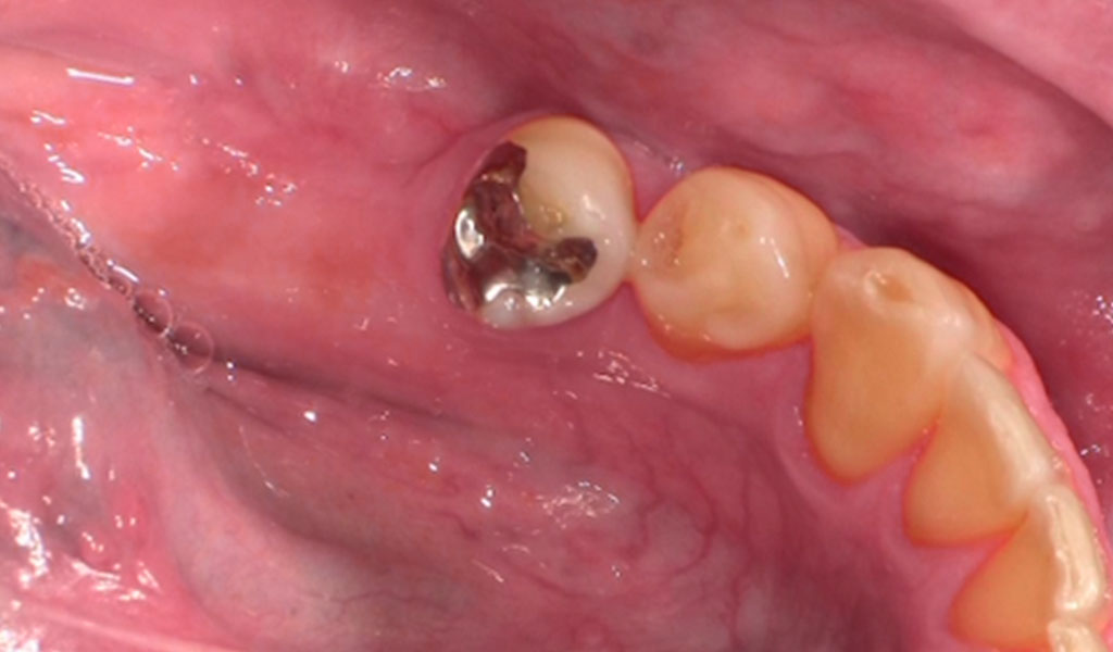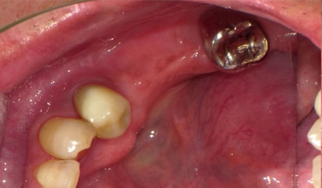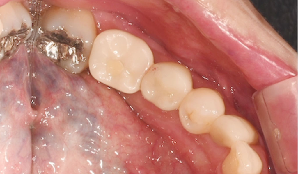 50代男性・藤沢市在住。右下奥歯ブリッジ手前が割れて他院にて右下4番を抜いてブリッジを勧められているが、長持ちするインプラントにしたくて来院。