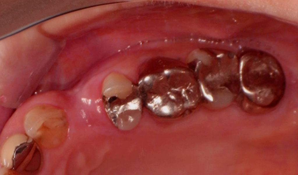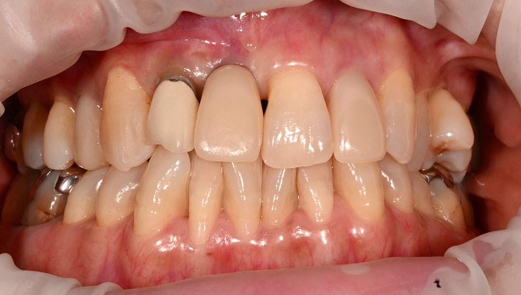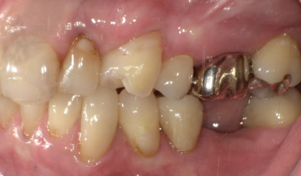 60代女性・鎌倉市在住。左上4番が縦に割れている状態で来院。