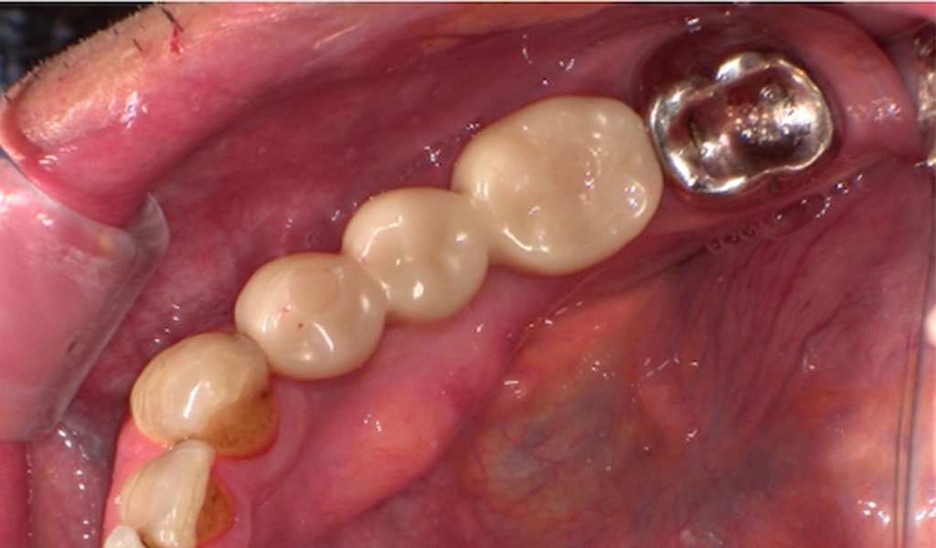 右下4番抜歯および右下4,6にインプラント埋め込み後、ジルコニアブリッジ装着