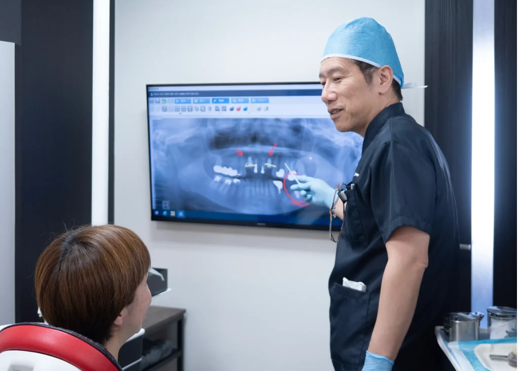 レントゲンを使用することで、肉眼では確認しづらい骨の状態や歯の根の形態を把握できます。歯周病による骨の吸収や、歯の根の先に炎症がないかなど、より詳細な診断が期待できます。